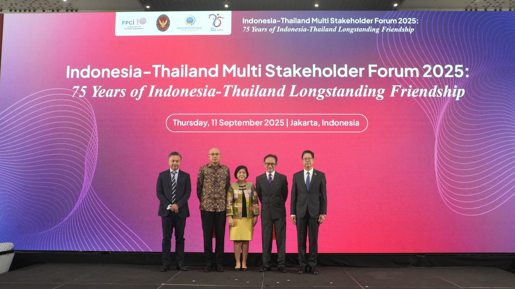 On 11 September 2025, FPCI in collaboration with the Royal Thai Embassy in Jakarta and the Ministry of Foreign Affairs of the Republic of Indonesia held the “Indonesia-Thailand Multi-Stakeholder Forum 2025: 75 Years of Indonesia-Thailand Longstanding Friendship”. This track 1.5 forum convened key stakeholders from government, business groups, academia, civil society, and students from both countries to reflect on the longstanding bilateral relationship and explore opportunities to guide the direction of the Indonesia-Thailand Strategic Partnership.
